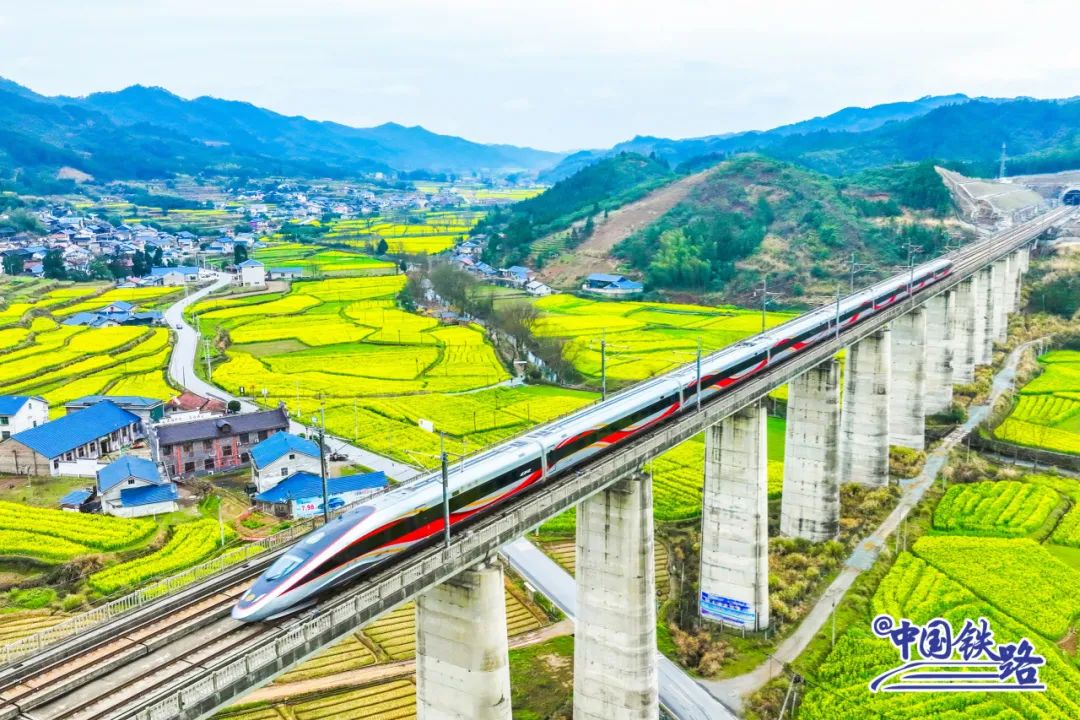 春日里的中国 金黄花海与飞驰的动车组 交织成流动的诗画 车窗化作绝佳取景框 演绎限定版的速度与浪漫 沪昆高铁 横贯东西的“金色长廊”
