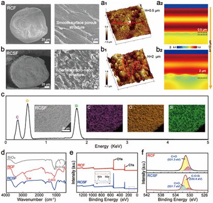 被动辐射制冷织物为降低热管理能耗提供了可持续路径,然而其传统制备过程中对石油衍生材料与复杂涂层工艺的依赖,严重制约了环境兼容性与力学耐久性。纤维素作为理想替代材料,凭借其可再生来源、可生物降解特性,以及源于C–O–C/C–O振动带的固有红外活性(在8–13 μm大气窗口波段)展现出显著优势。基于此,通过将纤维素与仿皮肤皱纹结构设计相结合,可实现了光学性能、穿着舒适度与可扩展制造之间的协同平衡。 近日,东华大学材料科学与工程学院、先进纤维材料全国重点实验室孔维庆/朱美芳课题组通过从人体皮肤的多层结构与热调节机制中获得灵感,设计了具有仿表皮褶皱结构的纤维素/纳米二氧化硅辐射制冷纤维(RCSF)(图1)。 图1 仿生设计与RCSF的可扩展制造 该纤维表面呈现出独特的仿皮肤褶皱突起(高度≈2.0 μm),其微纳米分级粗糙度是原始纤维的四倍。这种协同结构不仅显著提升了太阳光的散射效率,更因其增大的比表面积和形成的空腔结构,有效优化了纤维在人体红外波段(中红外)的吸收与发射率,从而增强了辐射制冷性能。研究表明,纳米二氧化硅通过氢键与纤维素基质牢固结合,构成了稳定的微纳分级结构(图2)。 图2 RCSF的形态和结构特征 通过对RCSF的光学性能和户外性能测试(图3),该纤维表现出优异的辐射制冷性能,能实现高反射率(93.7%)与高红外发射率(0.98)的协同,同时在户外 800W/m2太阳辐射下实现100.1W/m2净制冷功率,较再生纤维素纤维降温5 °C。 在实际应用中,RCSFs-50织物表现出卓越的综合性能:室内降温效果达3.39°C,较棉织物提升139%;户外使用时表面温度持续低于体表5°C。其透气性为涤纶的9.5倍、棉的1.73倍,透湿性与棉相当。在865 W/m2太阳辐照下,其温度较棉和涤纶分别低5.8°C和9.1°C。经过10次洗涤磨损后,仍保持97.6%的冷却效率,展现出优异的耐久性(图4),为可持续户外冷却纺织品的开发奠定了坚实基础。 图3 RCSF的光学特性与户外测试性能 图4可穿戴性能 东华大学材料科学与工程学院博士生李绮华为本论文的第一作者,通讯作者为孔维庆副研究员。相关成果近期以“皮肤皱纹启发的微纳米纤维素复合纤维实现高效日间辐射制冷(Eco-Friendly Skin-Wrinkle-Inspired Micro-Nano Structured CelluloseComposite Fibers for Highly Efficient Daytime Radiative Cooling)”为题发表在《ACS Nano》上。该工作得到了上海东方英才(青年项目)等资助。 原文地址:https://doi.org/10.1021/acsnano.5c06103 |
