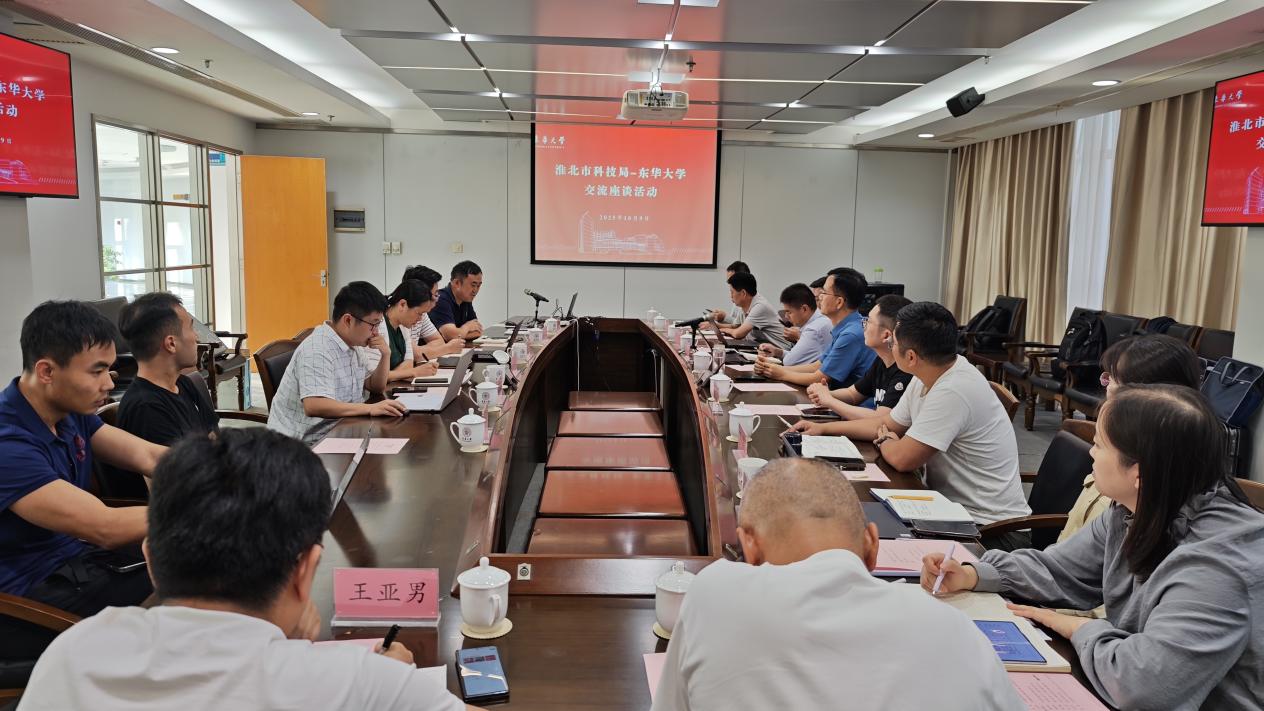 10月9日,淮北市科技局党组书记王峰一行来访东华大学,围绕深化产学研合作、促进科技成果转化、服务区域经济高质量发展等议题进行深入交流。科研院基地成果处处长谢旭红以及相关学院教师代表参会。