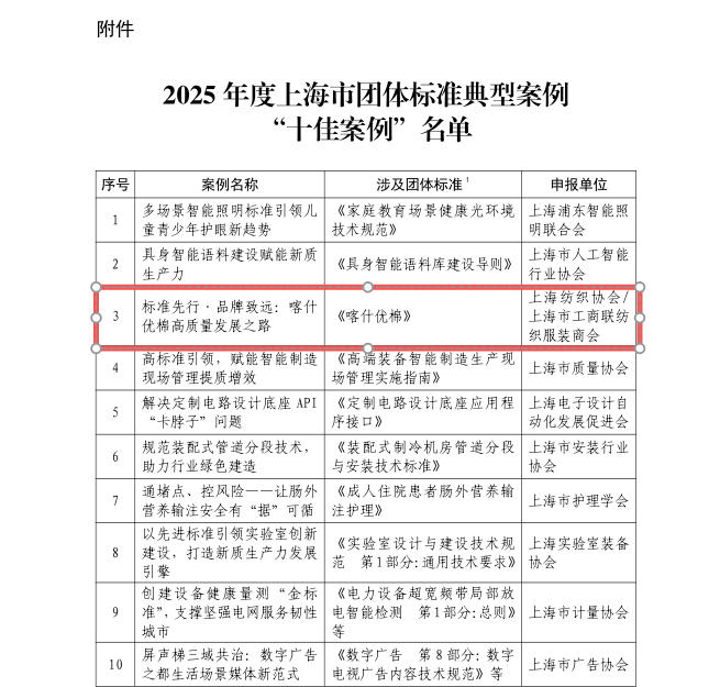 | 我校牵头编制的团体标准《喀什优棉》入选2025年度上海市团体标准典型案例 “十佳案例” |