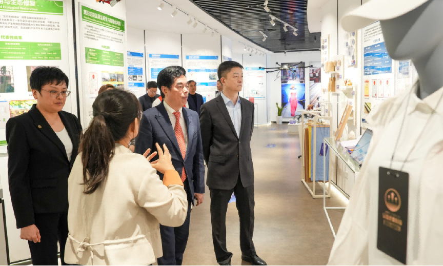 (高德康一行参观我校科技成果展示馆) 座谈会上,双方代表围绕校企合作基础、科研攻关重点、人才培养机制等议题展开交流,进一步凝聚校企协同创新共识。会后,高德康一行参观了学校科技成果展示馆。
