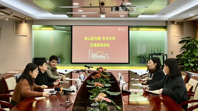 12月17日,金山区科学技术委员会副主任孙朋丽一行来访东华大学,就产学研合作开展座谈交流。科学技术研究院、材料科学与工程学院等负责人参会交流,产学研合作处处长刘亚男主持会议。