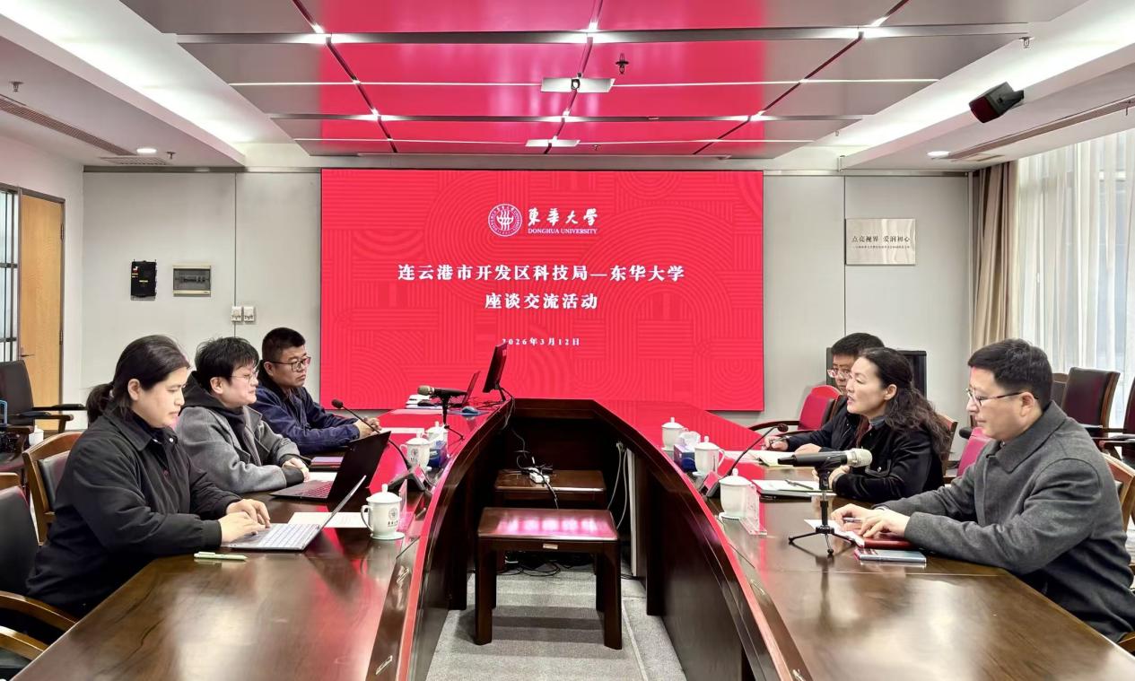 3月12日,连云港市开发区科技局局长杨东文一行来访东华大学,就产学研合作开展座谈交流。科学技术研究院、校地合作办公室、民用航空复合材料协同创新中心负责人及教师代表参会,产学研合作处处长刘亚男主持会议。
